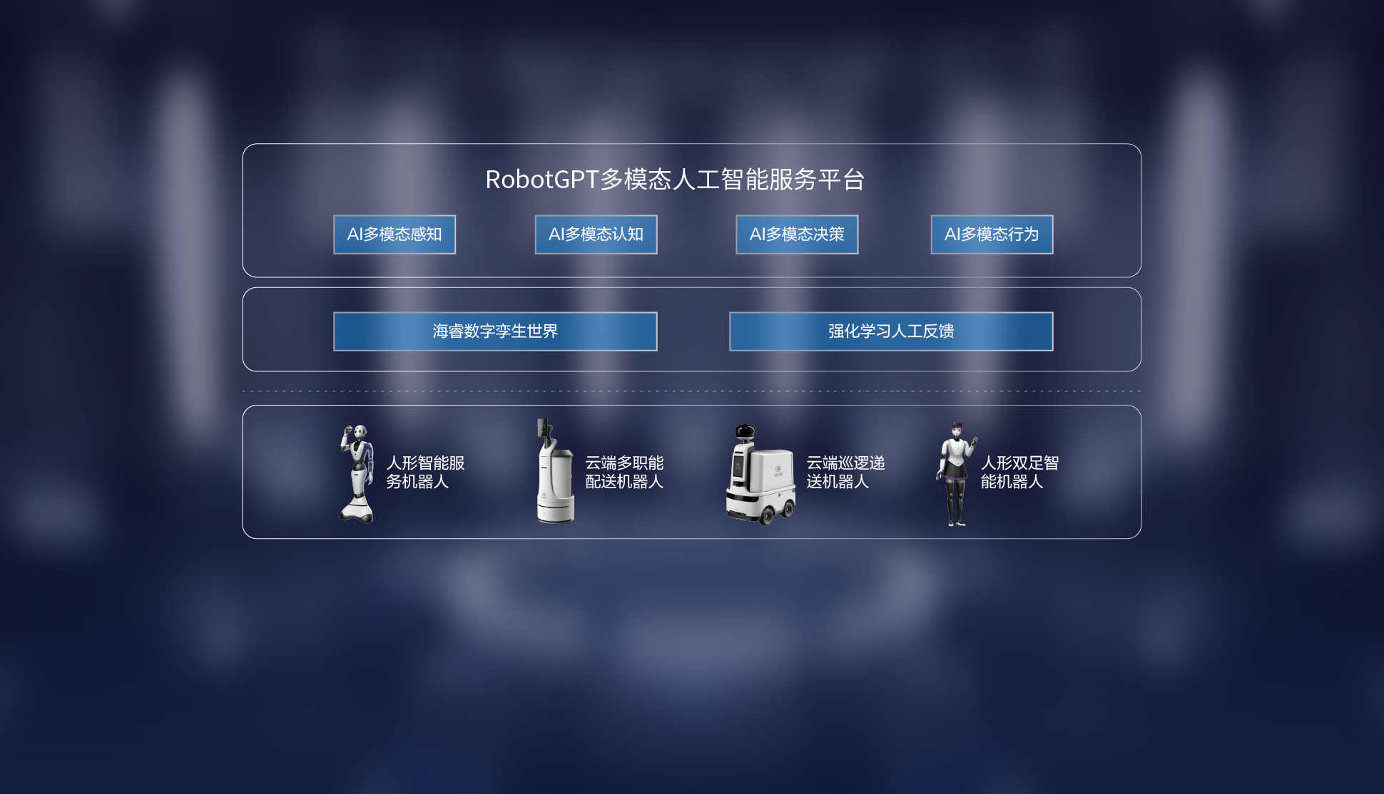 生成型AI(Generative AI)模型。它以多模态Transformer为基础,在海睿数字孪生世界中进行机器人行为训练,让机器人拥